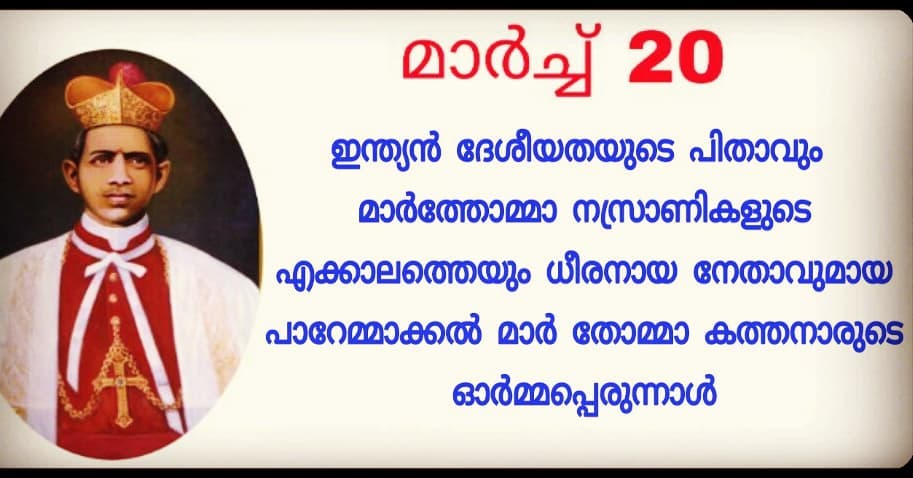 കടനാട്ടിൽ ഭൂജാതയായി മലങ്കരയിൽ നിറഞ്ഞ് നിന്ന് രാമപുരത്ത് കബറടങ്ങി നസ്രാണികളുടെ ഊർജ്ജ സ്രോതസ്സായി ഇന്നും നിലകൊള്ളുന്ന പാറേമ്മാക്കൽ തൊമ്മൻ ഗോവർണ്ണദോർ.നസ്രാണികളുടെ സ്വന്തം പാറേമ്മാക്കലച്ചൻ.നസ്രാണി എന്ന പേരിൽ അറിയപ്പെടുന്ന…
