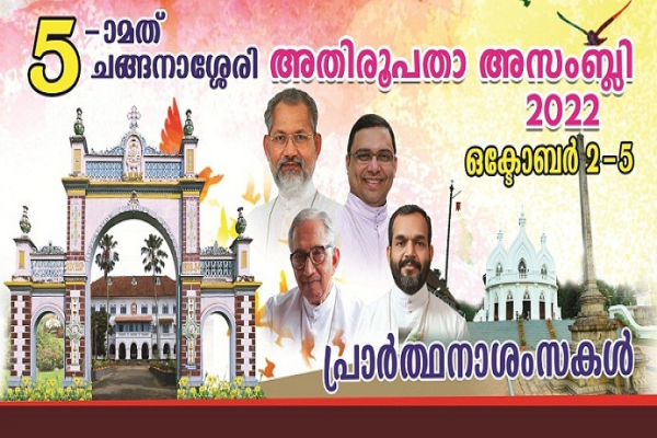അഞ്ചാമത് ചങ്ങനാശേരി അതിരൂപതാ അസംബ്‌ളി ഒക്ടോബർ 2 മുതൽ 5 വരെ കുന്നന്താനം സീയോൻ ധ്യാനകേന്ദ്രത്തിൽ നടക്കും. തിരുവല്ല മലങ്കര അതിരൂപത ആർച്ച്ബിഷപ് തോമസ് മാർ കൂറിലോസ്…