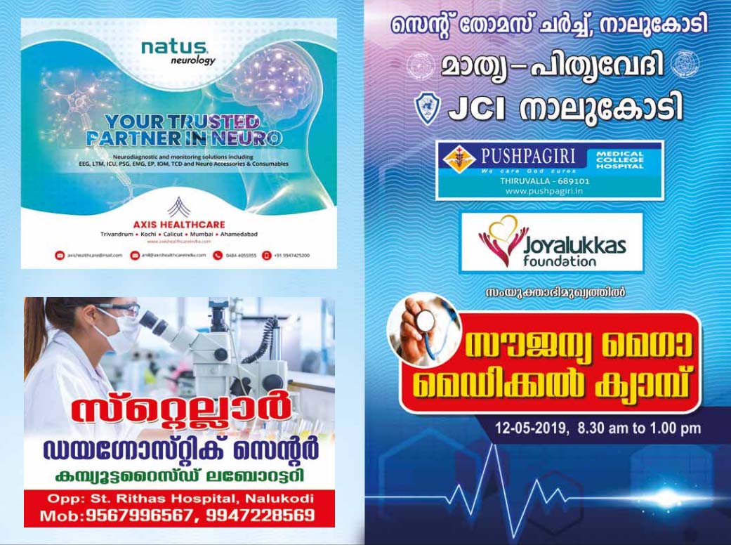 നാലുകോടി: സെന്റ് തോമസ് ചർച്ച് മാതൃ – പിതൃവേദി, ജെ സി ഐ നാലുകോടി, പുഷ്പഗിരി മെഡിക്കൽ കോളേജ്, ജോയ്‌ ആലുക്കാസ് ഫൗണ്ടേഷൻ എന്നിവയുടെ സംയുക്ത ആഭിമുഖ്യത്തിൽ…